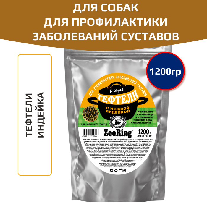 ZooRing корм консервированный для собак тефтели в соусе с нежной индейкой.