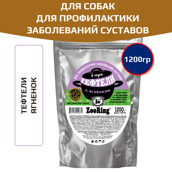 ZooRing корм консервированный для собак тефтели в соусе с ягненком.