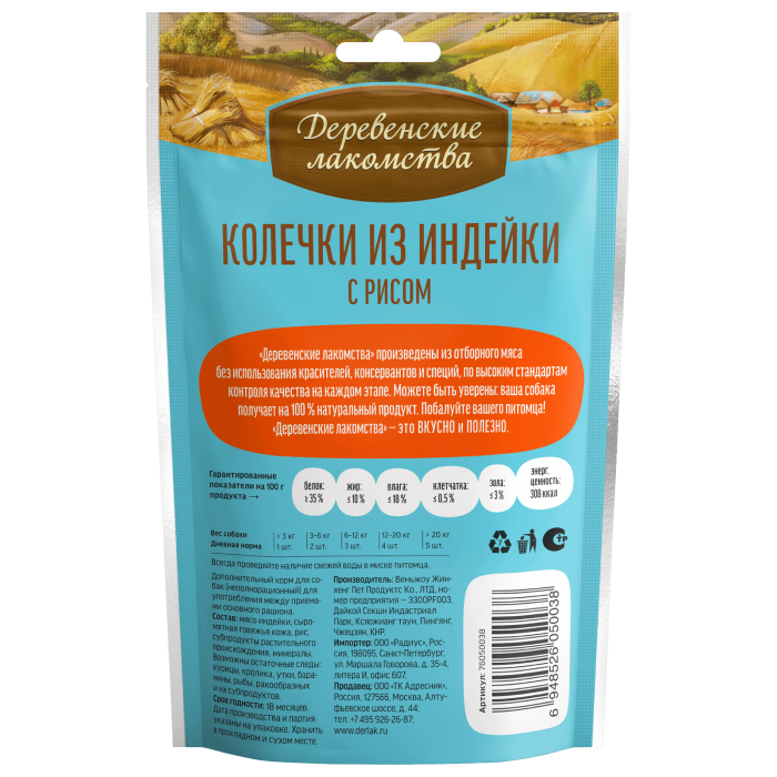 Деревенские лакомства - это серия уникальных лакомств для собак и кошек. В составе продукта 100% мясо, специально нарезанное и запеченое в печи. В каждой пачке содержатся все необходимые питомцу витамины, минералы и микроэлементы.