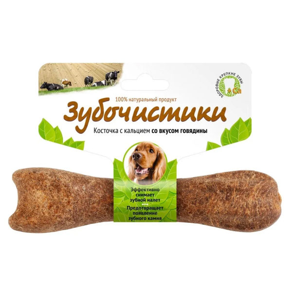 Деревенские лакомства косточка для собак 10-25кг с кальцием со вкусом говядины, зубочистики.