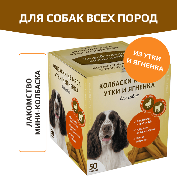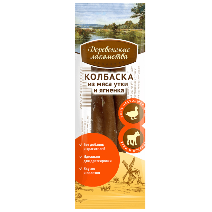 Деревенские лакомства для собак мини колбаски из мяса утки и ягненка.