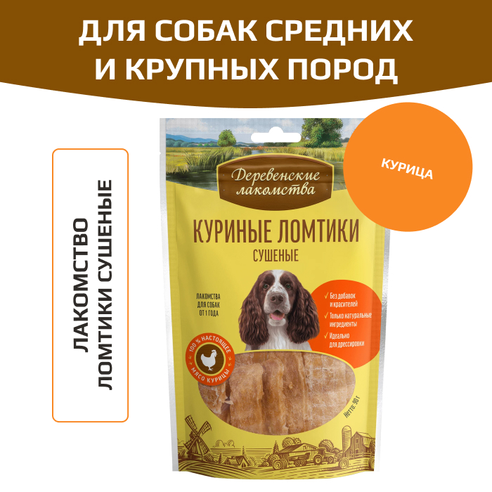Деревенские лакомства традиционные для собак 100% куриные ломтики сушеные.