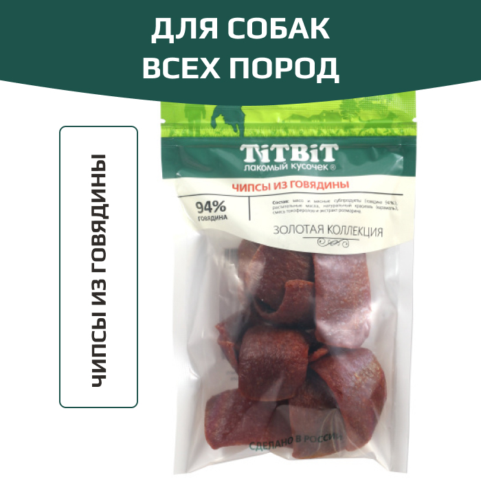 TiTBiT Золотая коллекция лакомство для собак Чипсы из говядины, для поощрения.