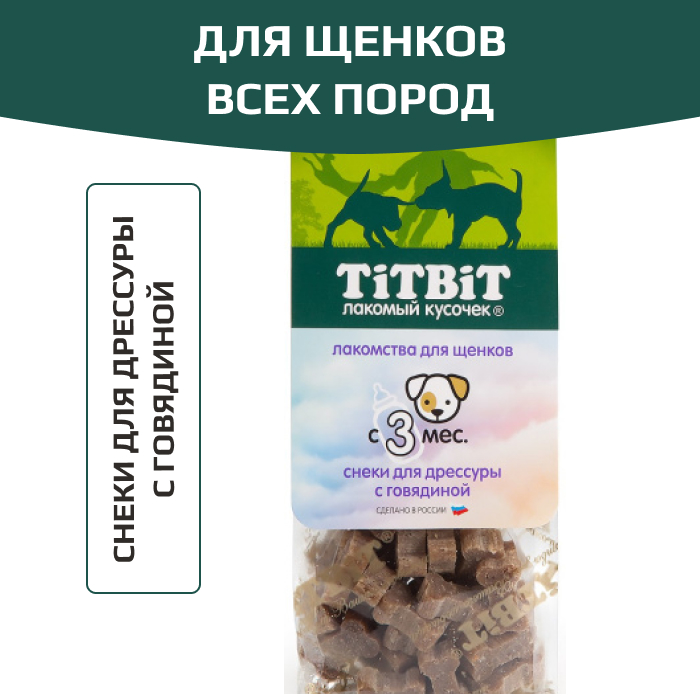 TiTBiT лакомство Снеки для дрессуры с говядиной для щенков всех пород.