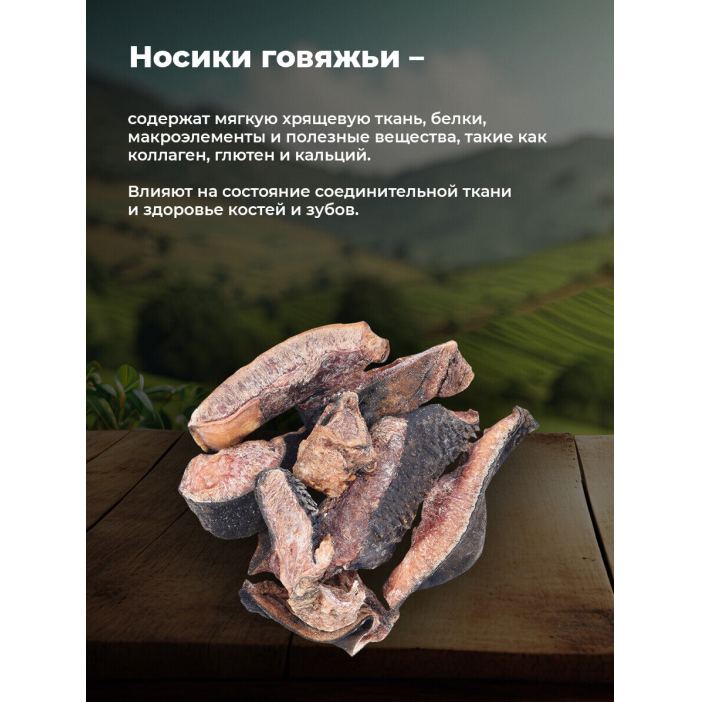 Носики говяжьи полезны для собак, так как они содержат мягкую хрящевую ткань, белки, макроэлементы и полезные вещества, такие как коллаген, глютен и кальций. Эти компоненты влияют на состояние соединительной ткани и здоровье костей и зубов.