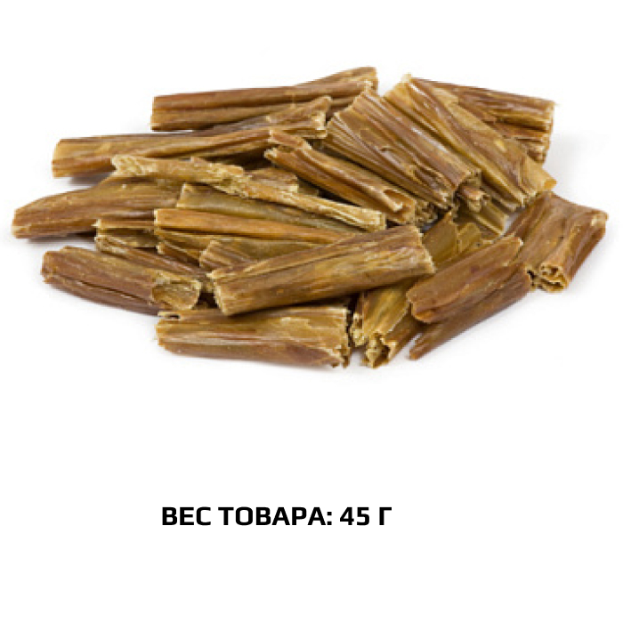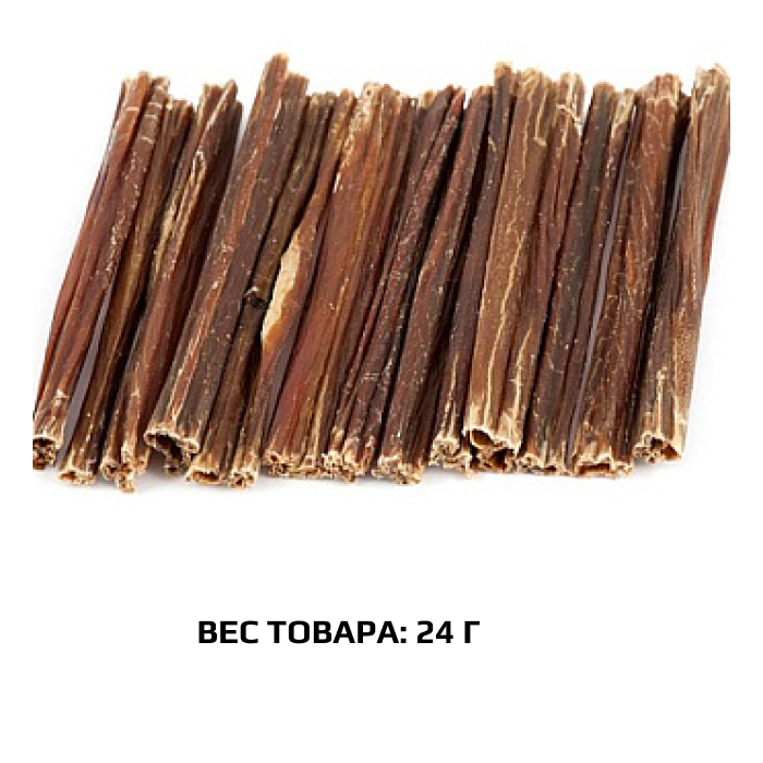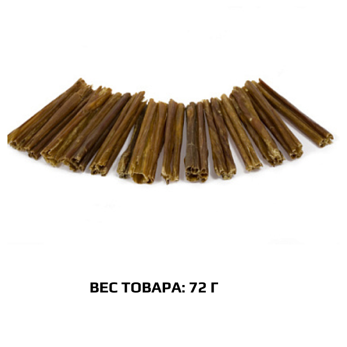 Высушенные порезанные на отрезки говяжьи кишки. Легкоусвояемое лакомство, богатое витаминами и ферментами микрофлоры кишечника крупного рогатого скота. Имеют большую энергетическую ценность из-за повышенного содержания жира. Богаты переваримыми протеинами, которые содержат все незаменимые аминокислоты и потому усваиваются на 90-95%. Содержат минеральные вещества в большем количестве, чем все остальные продукты (в том числе кальций, магний и фосфор), жирорастворимые витамины, а также водорастворимые витамины. Очищает зубы у мелких пород собак, продукт полезен для стимуляции пищеварения.