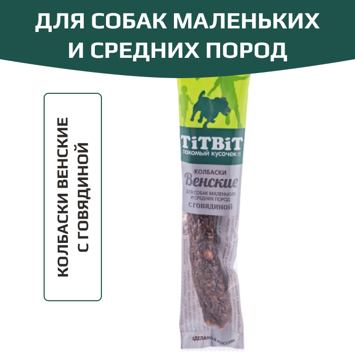 TiTBiT лакомство для собак маленьких и средних пород Колбаски Венские с говядиной, для поощрения, для игр.