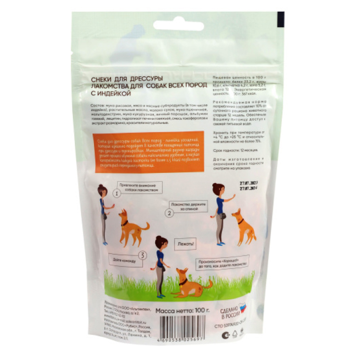 Снеки для дрессуры собак всех пород - линейка угощений, которая идеально подойдет в качестве поощрения питомца при дрессуре и тренировках. Миниатюрный размер награды делает процесс обучения собаки максимально удобным, а низкая калорийность каждой косточки (не более 1,5 ккал) позволяет снизить риск переедания у питомца.