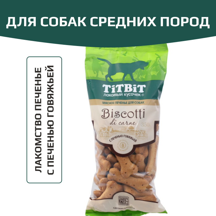 TiTBiT Biscotti лакомство для собак печенье с печенью говяжьей, для поощрения, для дрессуры.