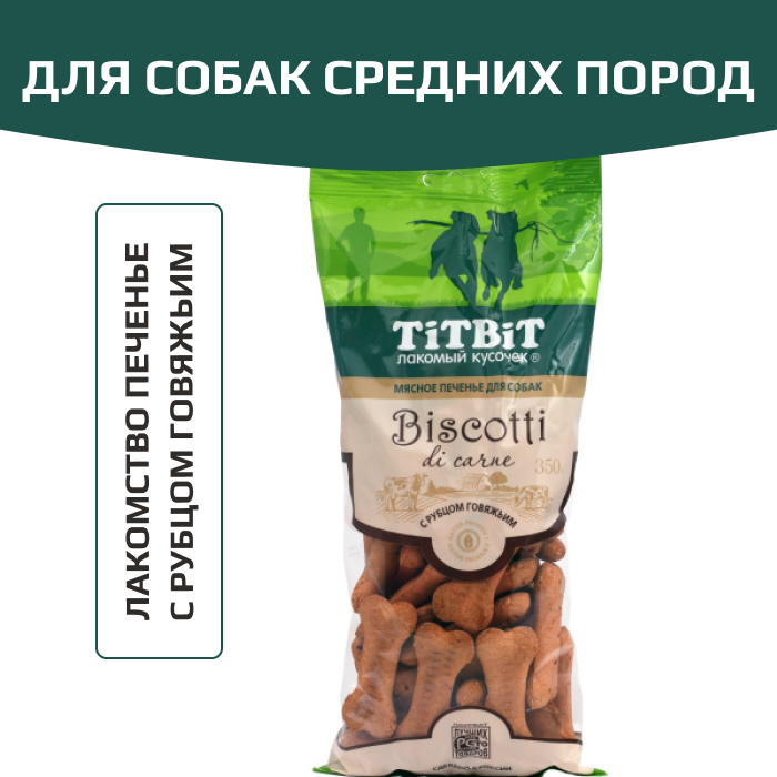TiTBiT Biscotti лакомство для собак печенье с рубцом говяжьим, для поощрения, для дрессуры.