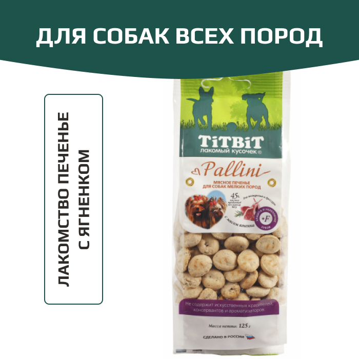 TiTBiT Pallini лакомство для собак печенье с ягненком, для поощрения, для дрессуры.