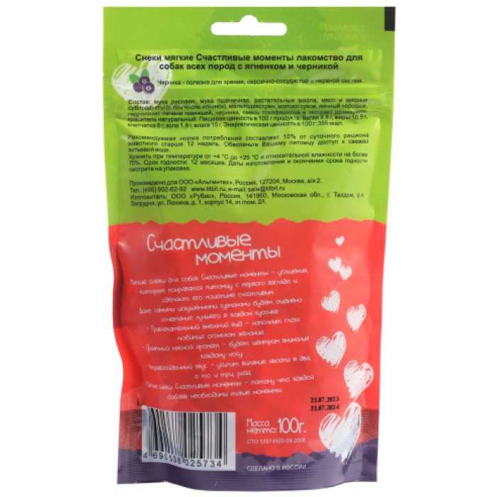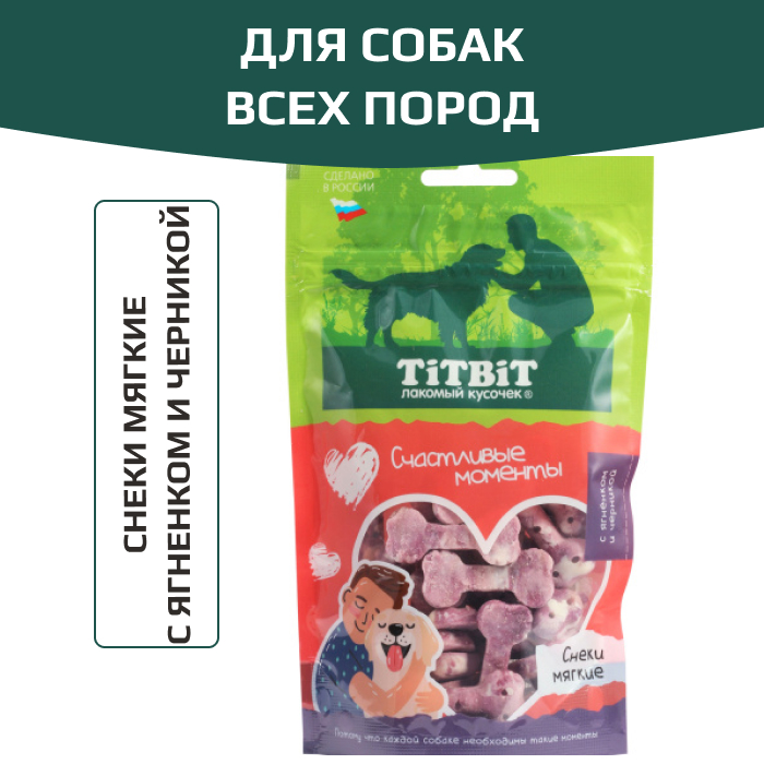 TiTBiT лакомство Снеки мягкие Счастливые моменты для собак всех пород, с ягненком и черникой.
