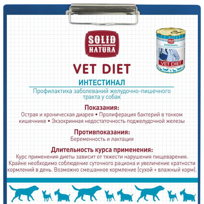Solid Natura VET Intestinal диета для собак, всех возрастов и всех пород при нарушениях работы ЖКТ.