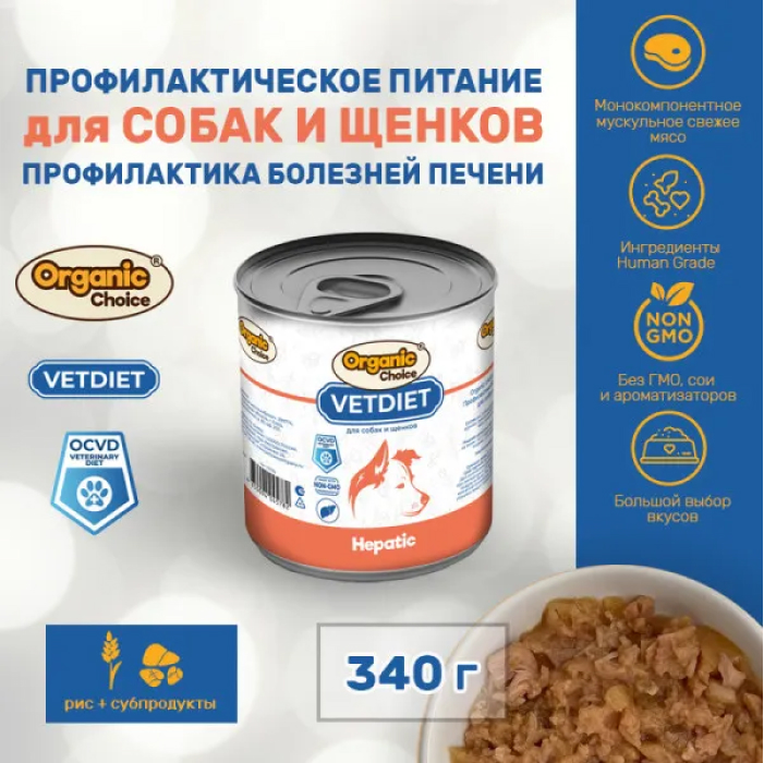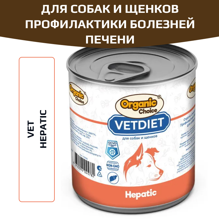 Organic Сhoice VET Hepatic влажный корм для взрослых собак и щенков, для профилактики болезней печени.