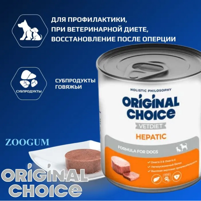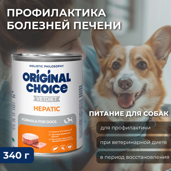 Original Choice Vetdiet Hepatic влажный диетический корм для собак и щенков профилактика болезней печени.
