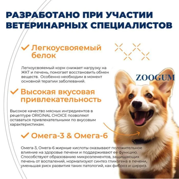 Original Choice Vetdiet Hepatic - это ОМЕГА -3, ОМЕГА-6. Омега-3, Омега-6 жирные кислоты оказывают положительное влияние на здоровье печени и поддерживают ее функцию. Способствуют образованию микроэлементов, защищающих печень от воспалений, нормализуют синтез гликогена в печени, уменьшая риск развития таких патологий, как фиброз и цирроз. Original Choice Vetdiet Hepatic - это легкоусвояемый белок. Легкоусвояемый корм снижает нагрузку на ЖКТ и печень, помогает восстановить обмен веществ. Особенно необходим в момент основной терапии заболеваний.
