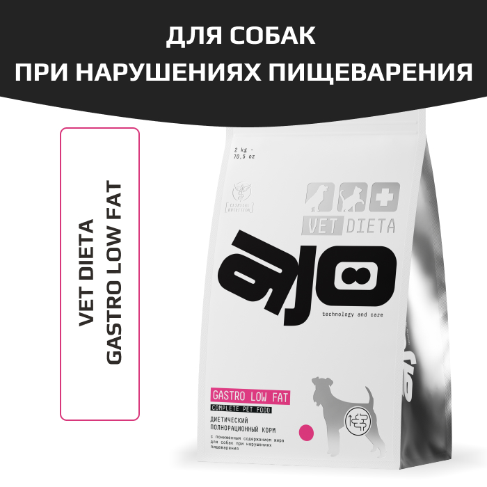 AJO Vet Dieta Gastro Low Fat Диета корм сухой для собак с пониженным содержанием жира при нарушениях пищеварения.