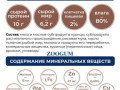 мясо курицы и мясные субпродукты куриные, субпродукты растительного происхождения, бурый рис, масло льняное, рыбий жир, молоко и продукты его переработки, минеральные вещества, куриные (перепелиные) яйца, дрожжи, углеводы.
