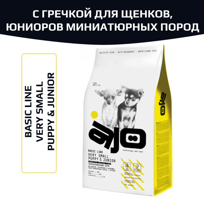 AJO Dog Very Small Puppy & Junior корм сухой для щенков миниатюрных пород, с гречкой.