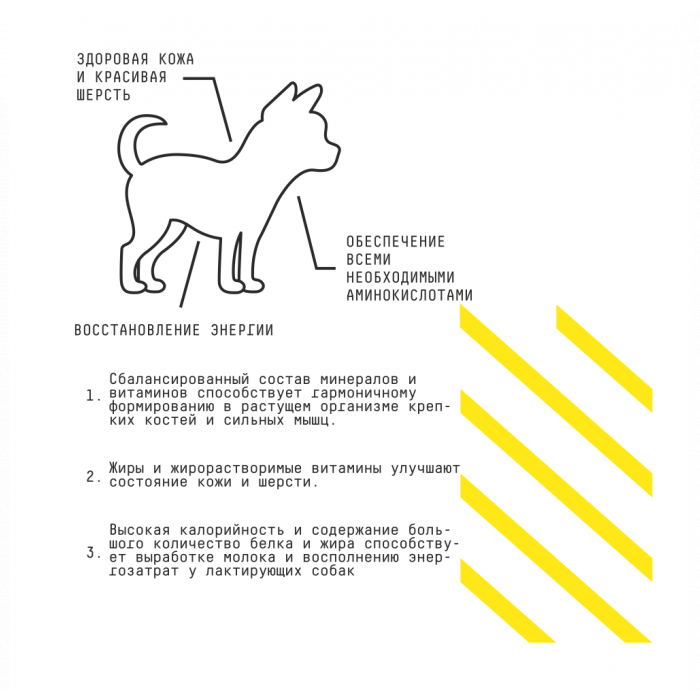 C Рисом Благоприятное влияние на кишечник за счёт обволакивающих свойств, укрепляет сердце и сосуды, богат железом и цинком, содержит клетчатку и важные для здоровья питомца аминокислоты.