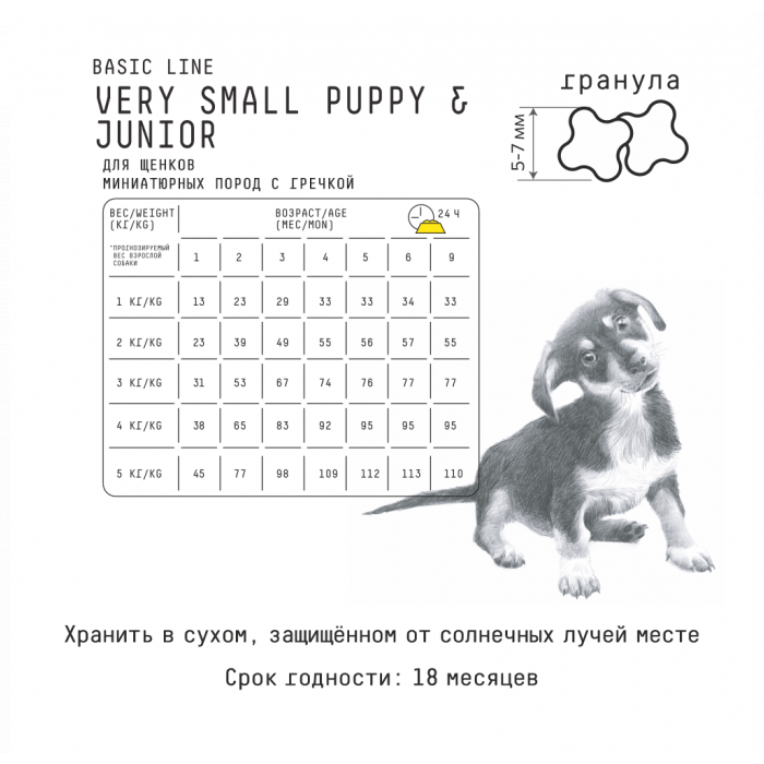 Сухой полнорационный корм для щенков миниатюрных пород, с гречкой.
