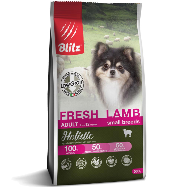 Рекомендуем низкозерновой корм Blitz Holistic «Свежий ягнёнок» – для ежедневного кормления мелких пород собак от одного года и старше. Пусть ваш гордый и отважный малыш будет всегда «на высоте»!