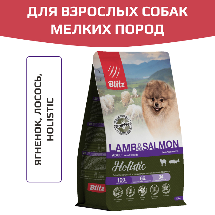 Blitz Holistic Lamb & Salmon Adult Dog Small Breeds (Grain Free) корм сухой беззерновой для взрослых собак мелких пород с ягненком и лососем.