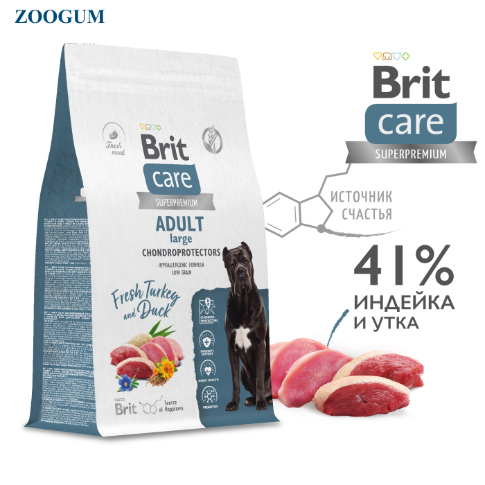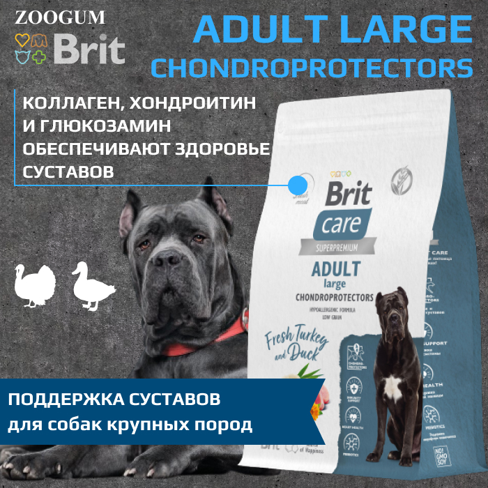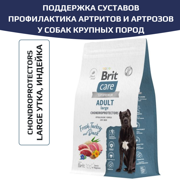 Brit Care Dog Adult Large Chondroprotectors корм сухой для собак крупных пород, поддержка суставов, с индейкой и уткой.