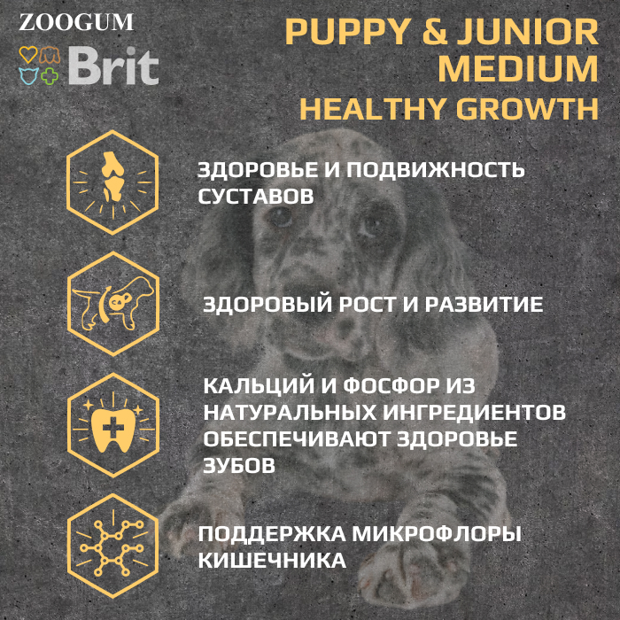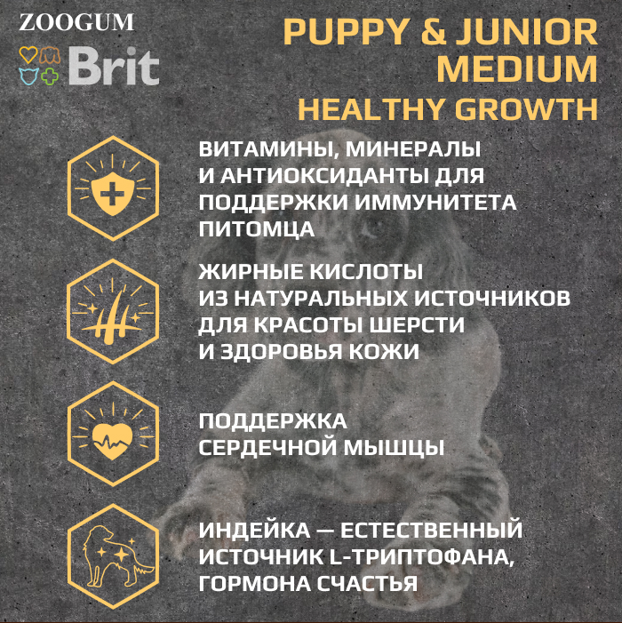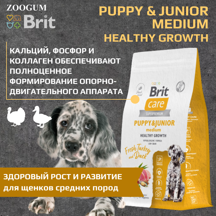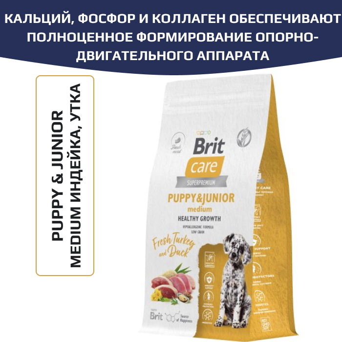 Brit Care Dog Puppy&Junior Medium Healthy Growth корм сухой для щенков и молодых собак средних пород, здоровый рост и развитие, с индейкой и уткой.