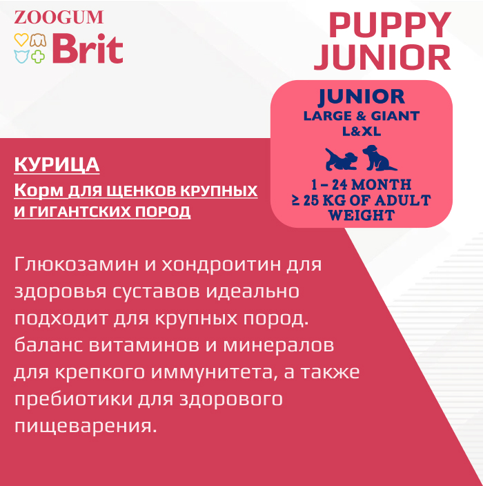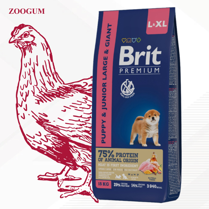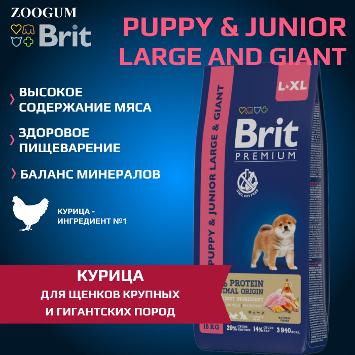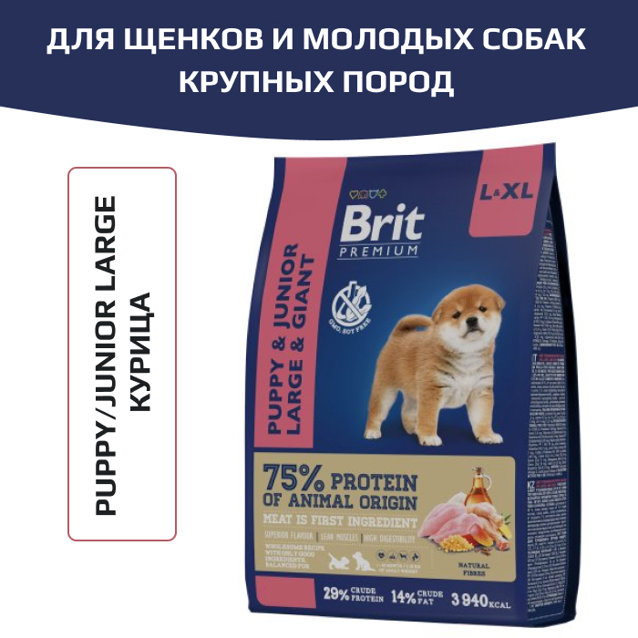 Brit Premium Dog Puppy and Junior Large and Giant корм сухой для щенков крупных и гигантских пород, курица.