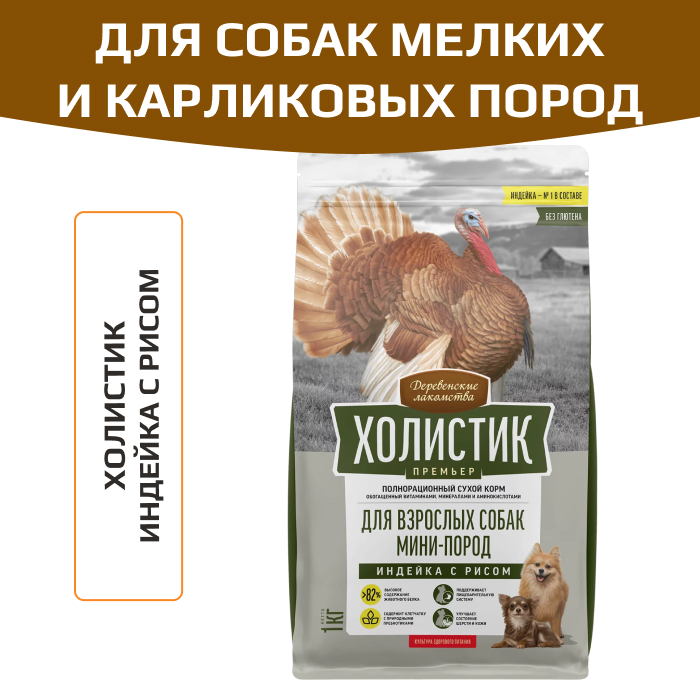 Деревенские лакомства корм сухой для собак мелких и карликовых пород, индейка с рисом.