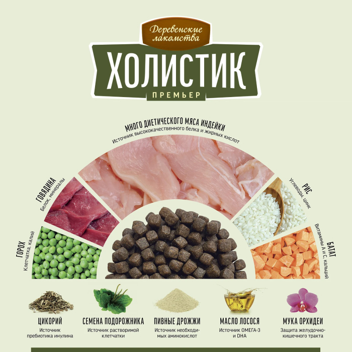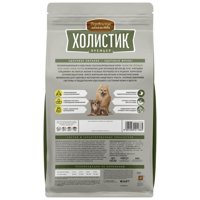 Полнорационный и идеально сбалансированный корм «Холистик премьер» для собак мини-пород разработан для питомцев весом до 10 кг, учитывая специфику их образа жизни и особые потребности к рациону. Корм богат антиоксидантами, омега-жирными кислотами и пребиотическими волокнами для здоровья желудочно-кишечного тракта, крепкой иммунной системыи поддержания идеального состояния кожи и шерсти.