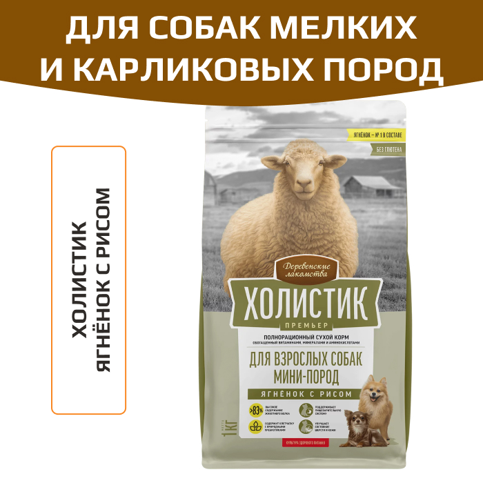 Деревенские лакомства Холистик Премьер сухой корм для собак мелких пород, ягнёнок с рисом.
