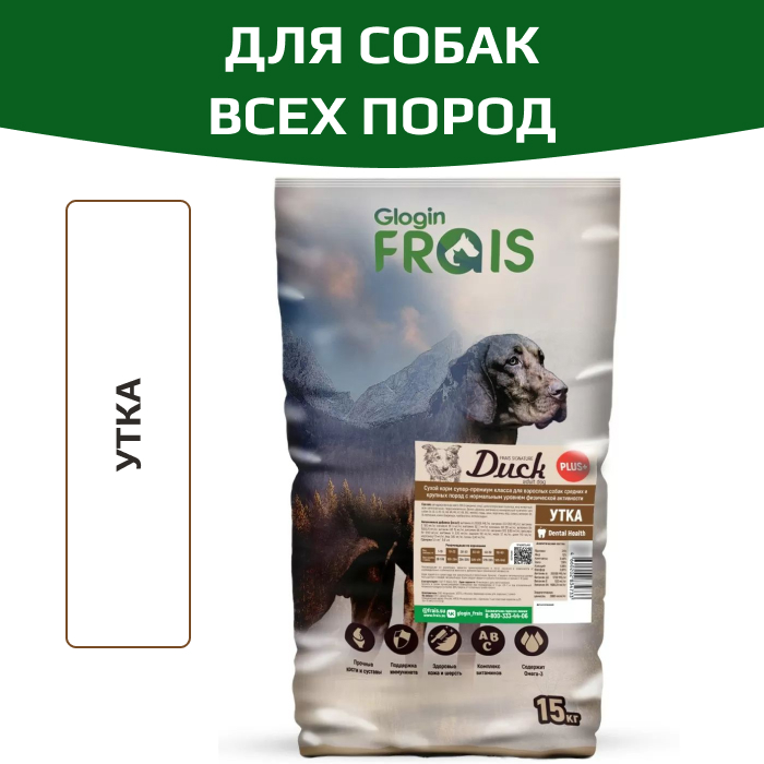FRAIS ADULT DOG DUCK PLUS+ сухой корм для взрослых собак средних и крупных пород с нормальным уровнем физической активности с мясом утки.