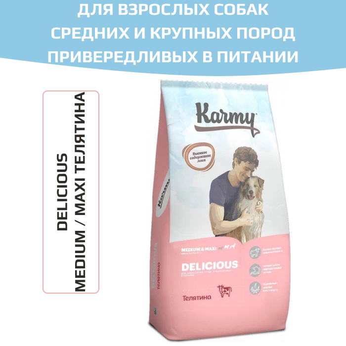 Karmy Delicious Medium and Maxi сухой корм для собак средних и крупных пород телятина.