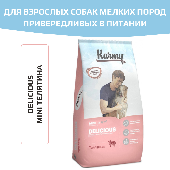 Karmy Delicious Mini сухой корм для собак мелких пород телятина.