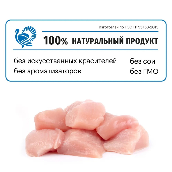 Не содержит субпродуктов, ароматизаторов, красителей и вкусовых добавок;