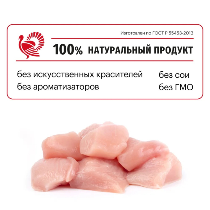 Не содержит субпродуктов, ароматизаторов, красителей и вкусовых добавок;