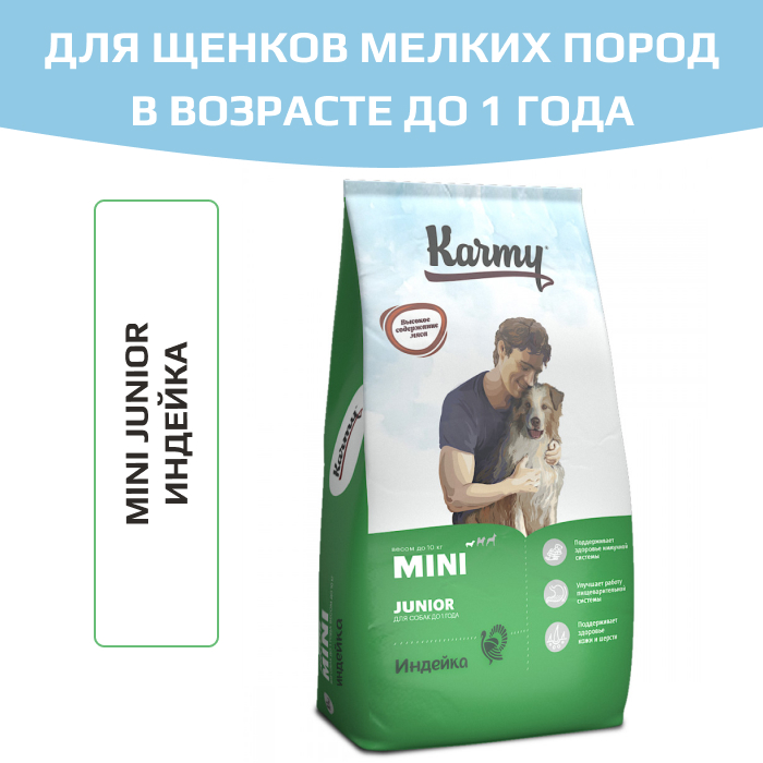 Karmy Mini Junior корм сухой для щенков мелких пород в возрасте до 1 года, беременных и кормящих сук, индейка.