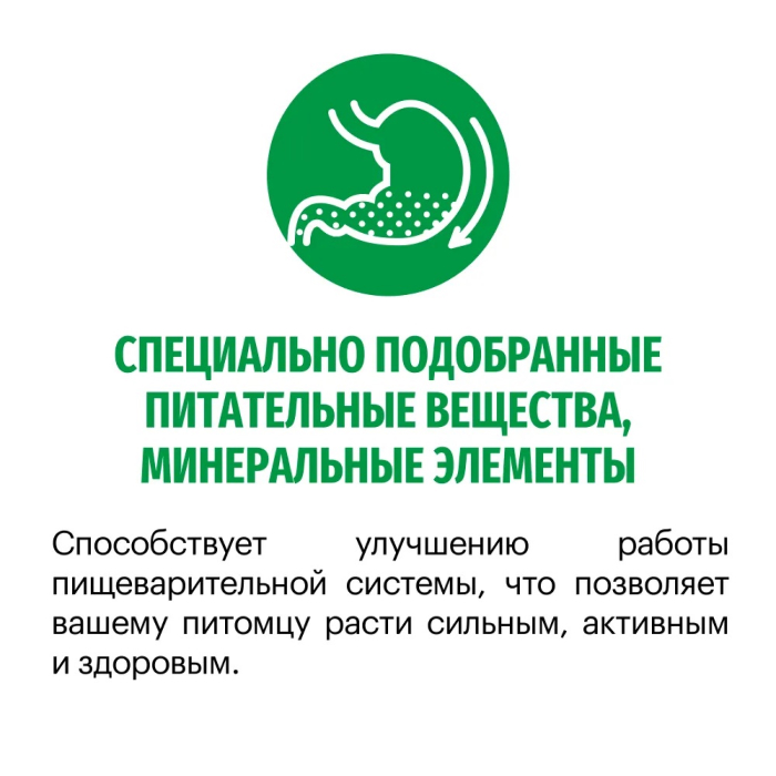 Минеральные элементы и витамины способствуют улучшению работы пищеварительной системы, что позволяет вашему щенку расти сильным, активным и здоровым.