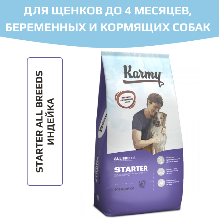 Karmy Starter корм сухой для щенков до 4-х месяцев, беременных и кормящих сук, индейка.
