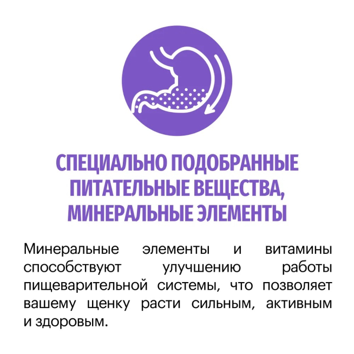 Минеральные элементы и витамины способствуют улучшению работы пищеварительной системы, что позволяет вашему щенку расти сильным, активным и здоровым.