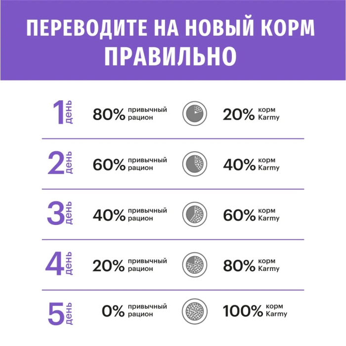 Корм Karmy полнорационный малозерновой корм из натуральных ингредиентов, поддерживает здоровое пищеварение и сильный иммунитет вашего питомца. Обеспечивает полноценное и точно сбалансированное питание для здоровья и активности вашего питомца.