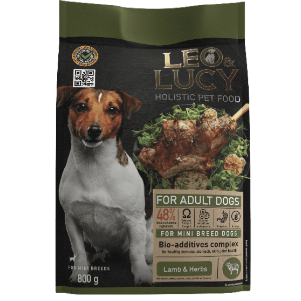 LEO&LUCY Holistic сухой корм полнорационный для взрослых собак мини пород с ягненком, травами и биодобавками.
