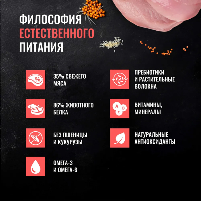 Сухой полнорационный корм ОДНО МЯСО для щенков с мясом индейки. Свежее мясо содержит все незаменимые аминокислоты, необходимые для здоровья питомцев, натуральные белки из свежего мяса легче усваиваются организмом животных, способствуя росту и поддержанию мышечной массы. Привлекательность вкуса: свежие мясные ингредиенты улучшают вкус и аромат корма, делая его более привлекательным для собак.