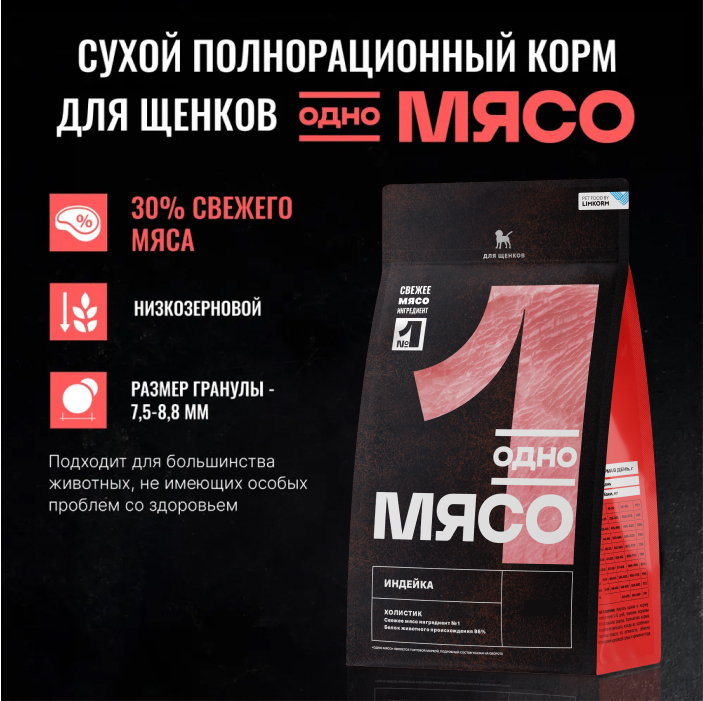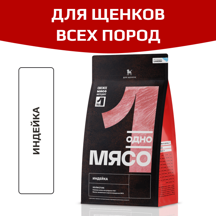 Одно Мясо корм сухой для щенков с мясом индейки.