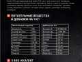 влажность - 9%, сырой протеин - 25%, сырой жир - 16%, сырая клетчатка - 2,2%, сырая зола - 7,2%, углеводы - 40,6%, кальций - 1,4%, фосфор - 1,1%, омега-3 - 0,5%, омега-6 - 2,6%. витамин А - 20 000 МЕ, витамин D3 - 1 000 МЕ, витамин Е - 400 МЕ, витамин С - 200 мг, биотин - 0,8 мг, йод - 3,0 мг, селен - 0,2 мг, цинк - 100 мг, железо - 60 мг, марганец - 25 мг.