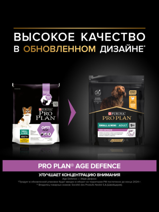 Pro Plan OptiAge Small & Mini Adult 9+ с курицей Корм сухой для пожилых собак мелких и карликовых пород.