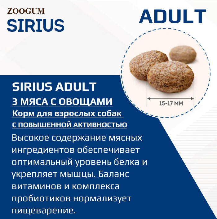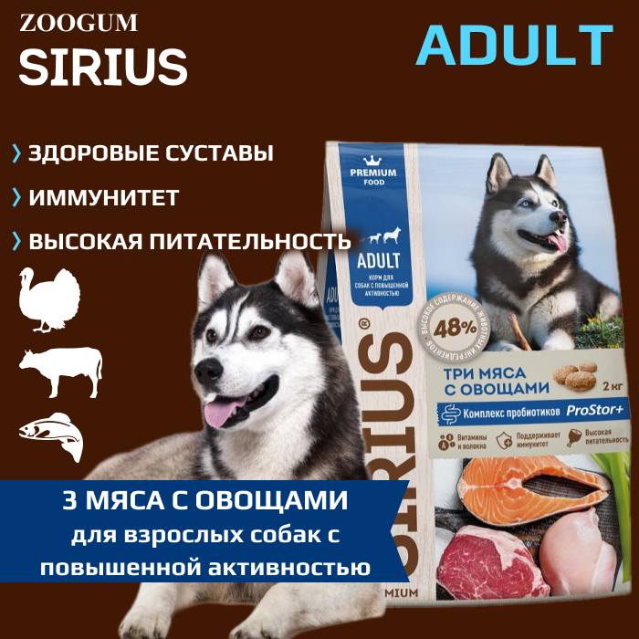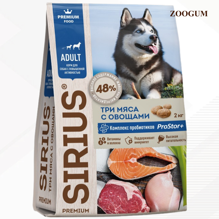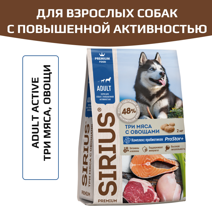 SIRIUS сухой корм для собак с повышенной активностью Три мяса с овощами.