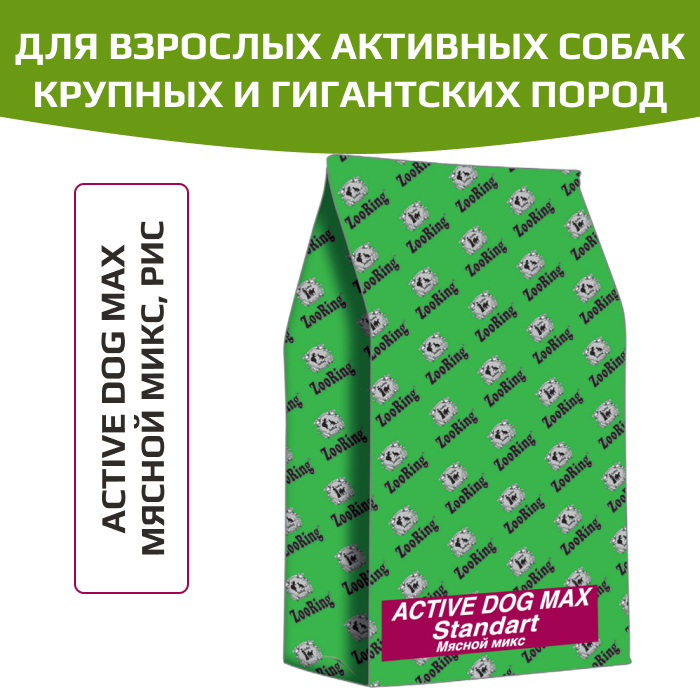 ZooRing Active Dog Max Standart корм сухой для взрослых активных собак крупных и гигантских пород мясной микс.